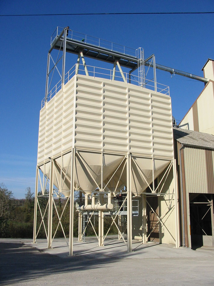 Souvent réalisés en cellules multiples accolées pour les grands volumes de stockage, les silos de type palplanche offrent une optimisation du volume stocké par rapport à la surface au sol du projet.